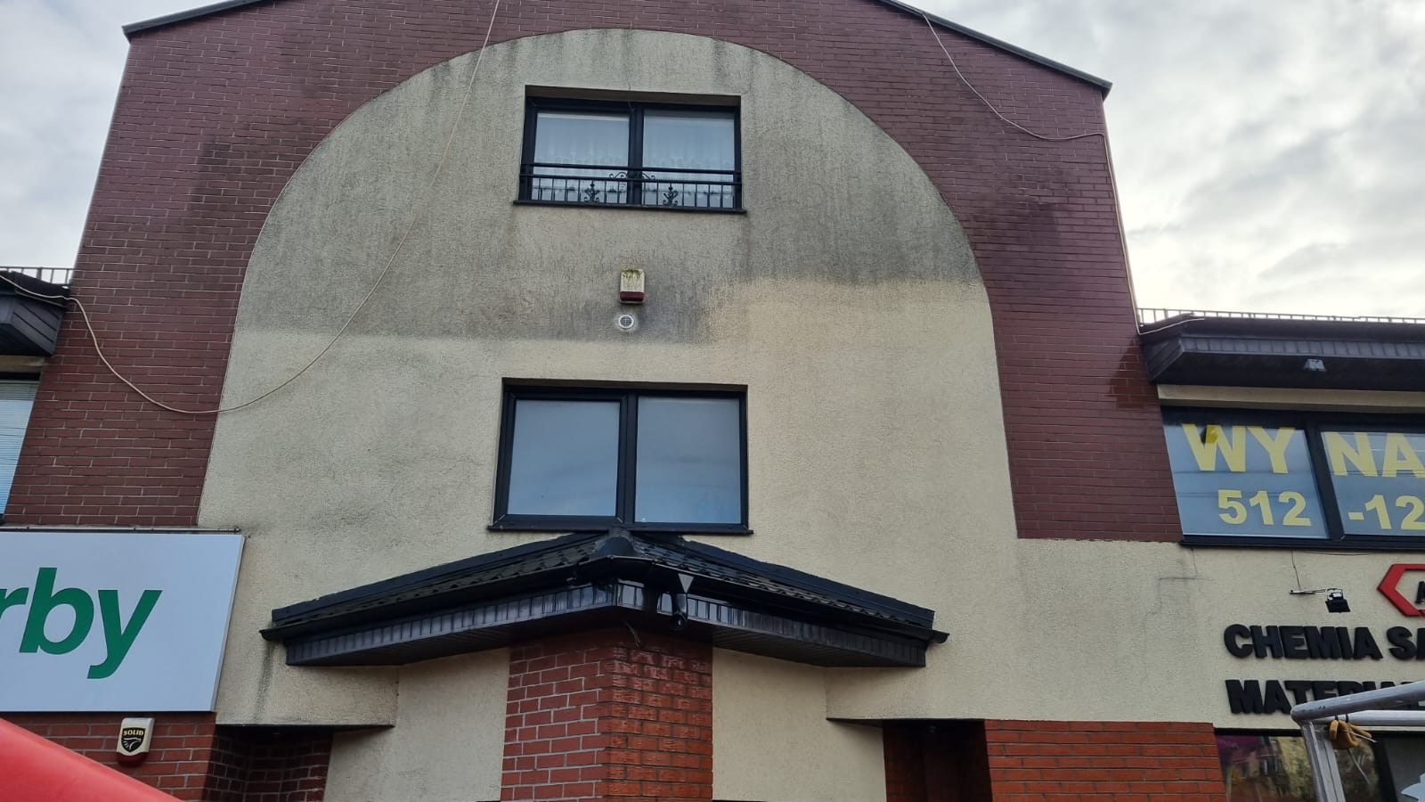 Elewacja była zabrudzona smogiem, kurzem i zielonymi wykwitami. Po zastosowaniu biodegradowalnych środków oraz płukaniu pod odpowiednim ciśnieniem odzyskała świeżość i estetyczny wygląd.